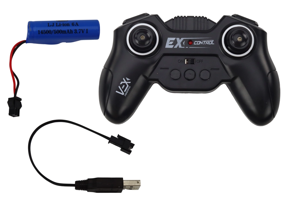 V balení najdete ovladač, Li‑ion akumulátor 3,7 V, USB nabíjecí kabel. Stačí vložit baterie do ovladače a vyrazit.