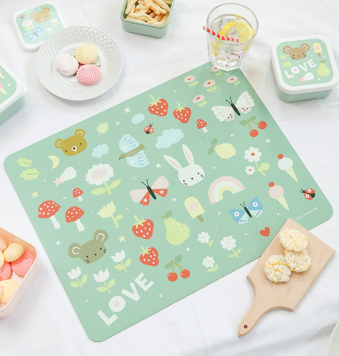 Praktické dětské prostírání v sytě zelené barvě s hravým motivem se hodí na každý stůl. Díky odolnému vinylu se snadno čistí, dlouhodobě vypadá skvěle a chrání povrch stolu při každodenním používání.