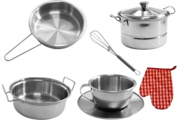 Tato realistická dětská sada hrnců je ideální pro malé kuchaře, kteří chtějí napodobit dospělé a zároveň rozvíjet své dovednosti. Kvalitní kovové provedení vypadá jako opravdové nádobí a výborně doplní každou dětskou kuchyňku. Skvělý nápad na dárek – zabaleno v dárkové krabici.
