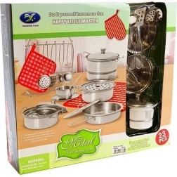 Kompletní nerezová kuchyňská sada pro děti s 23 díly přináší hodiny kreativní zábavy a učení. Obsahuje pánvičku, hrnce s pokličkami, náčiní a textilní doplňky – vše v metalickém provedení, které se hodí do každé dětské kuchyňky. Podporuje jemnou motoriku, spolupráci a rozvoj kreativity. Vhodné od 3 let, s certifikátem CE a v souladu s normou EN 71.