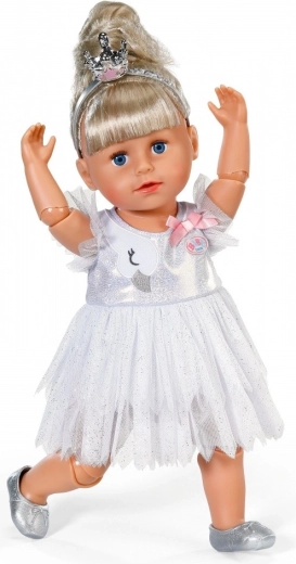 Rozzařte každé taneční vystoupení s baletním setem BABY born pro panenky 43 cm. Obsahuje třpytivé bílé tutu šaty s motivem labutě a mašličkou, stříbrné baletní botičky a korunku pro dokonale kouzelný vzhled. Skvělý doplněk pro kreativní a dlouhotrvající hru, kompatibilní i s BABY born Teddy.