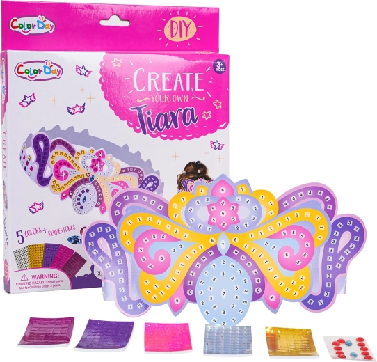 Kreativní sada pro děti od 3 let, se kterou si snadno vyrobí vlastní princeznovskou korunu. Balení obsahuje vše potřebné – kartonovou tiaru, samolepky a třpytivé kamínky. Děti si při zdobení rozvíjejí jemnou motoriku, koordinaci oko–ruka i kreativní myšlení. Koruna má dvoustupňové nastavení obvodu pro pohodlné nošení.