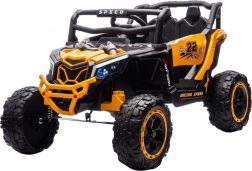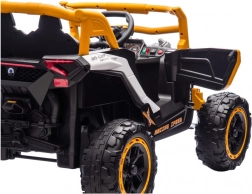 Robustní dětské elektrické auto 4x4 v atraktivní žluté barvě pro dvě děti nabízí dobrodružnou jízdu v terénu, velká profilovaná kola, realistické světla a odolnou konstrukci pro bezpečnou zábavu venku.