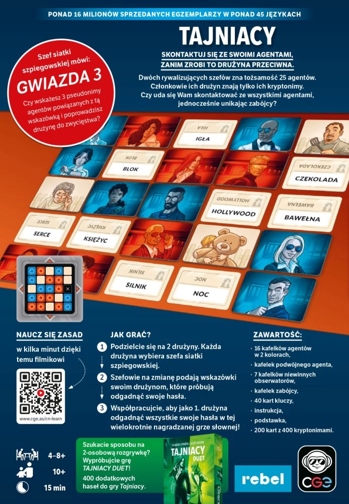- Napínavá kooperace i soupeření – dva týmy, jeden cíl: najít všechny své agenty dříve než soupeř.