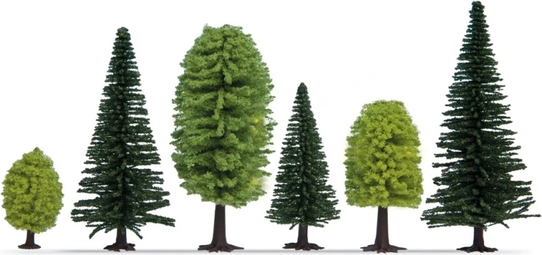 Díky různým výškám stromů (cca 5–14 cm) snadno vytvoříte členitou siluetu lesa, která zaujme na první pohled. Set je vhodný pro měřítka H0 a TT a představuje ideální základ pro idylické přírodní scenérie.