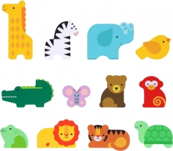 Barevné, snadno uchopitelné zvířecí figurky z FSC dřeva podporují jemnou motoriku a radost z objevování.