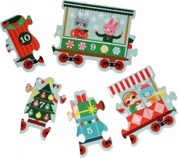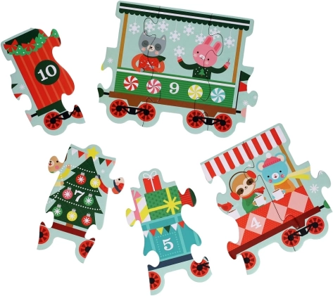 Postavte si dlouhý vánoční vláček plný zvířecích pasažérů a svátečních detailů. Děti při skládání procvičí rozpoznávání čísel, barvy a tvary i logické myšlení. Velké a odolné dílky se snadno drží a krásné ilustrace lákají k opakovanému hraní.