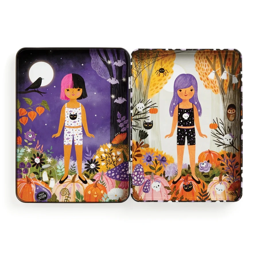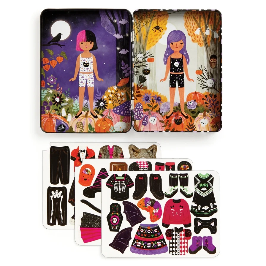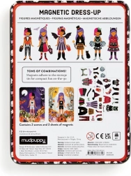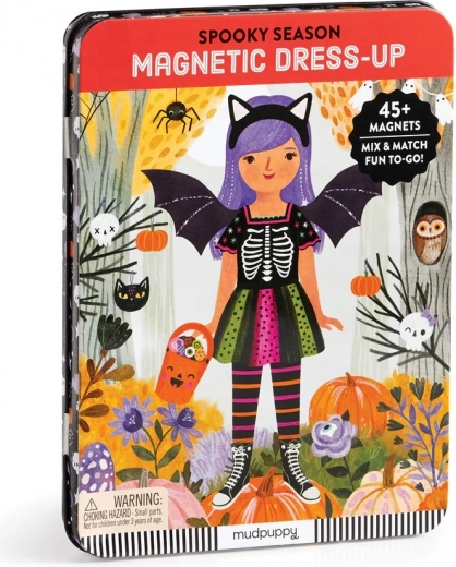Objevte zábavnou sadu pro kreativní převlékání s motivem Halloweenu – magnetické oblékání MUDPUppy Spooky Season v praktické kovové krabičce. Obsahuje více než 45 magnetů, 2 ilustrované scény a postavičky připravené na mix & match kostýmy. Ideální na doma i na cesty, s magnety, které drží na podložce a v krabičce zůstávají přehledně uložené.