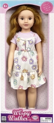 Roztomilá chodící panenka v květinových šatech potěší každé dítě. Má realistické proporce, velikost 70 cm a mrkací oči, které dodávají hře na skutečnost. Ideální pro rozvoj fantazie a pečovatelských dovedností.