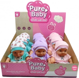 Roztomilé miminko o velikosti 20 cm potěší každé dítě. Dostupné jsou 3 barevné varianty – růžová, fialová a modrá. Ideální pro hraní na maminku, rozvoj jemné motoriky a fantazie. Vystaveno v display boxu po 9 kusech – skvělé i jako dárek.