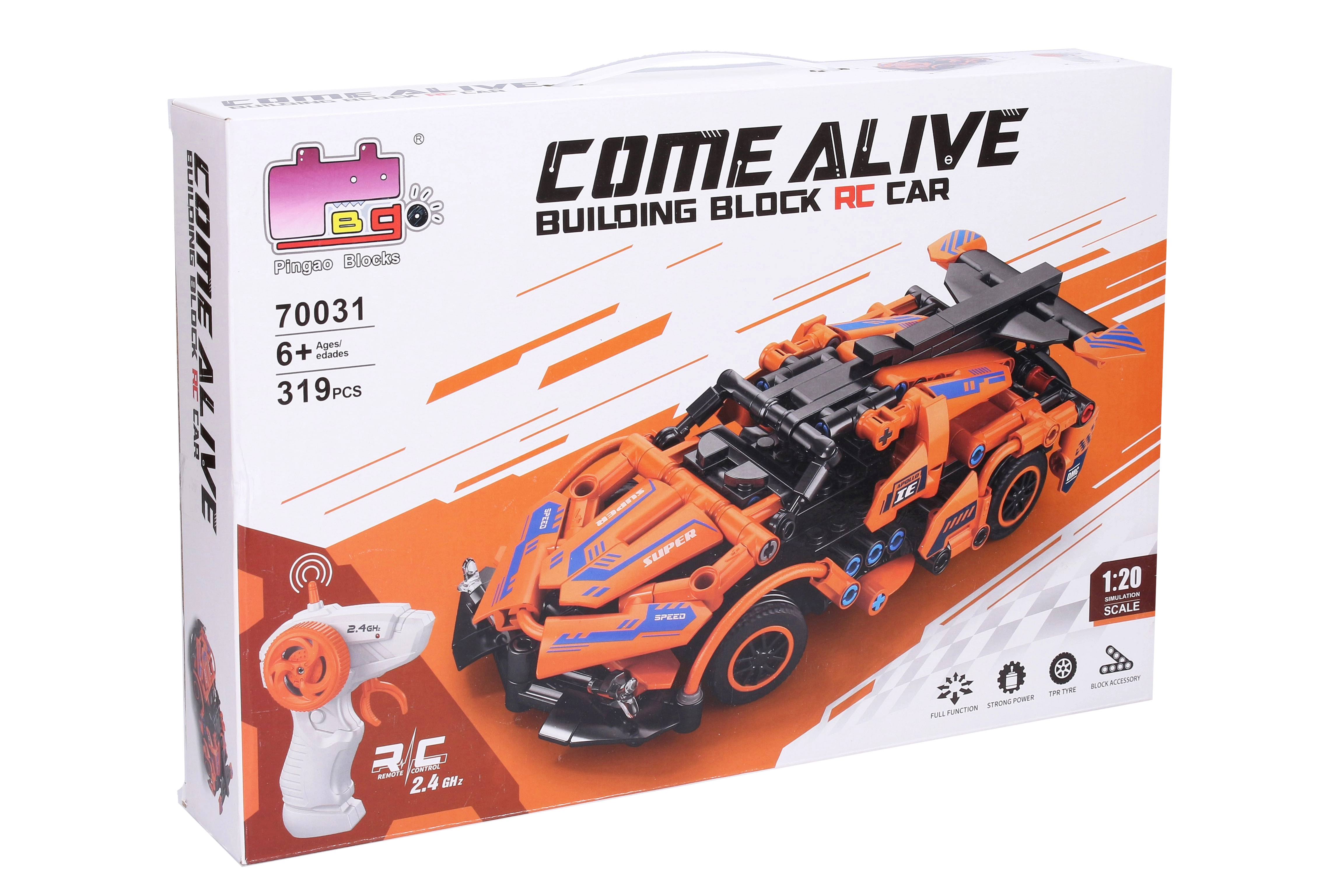 Postavte si své vlastní RC auto v atraktivní oranžové barvě a užijte si jízdu na dálkové ovládání. Sada obsahuje 319 dílků, pistolový ovladač s frekvencí 2,4 GHz, Li‑ion bateriový pack 3,7 V 350 mAh a USB kabel pro nabíjení. Ideální pro mladé konstruktéry i nadšence do techniky.