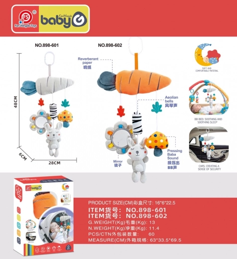 Senzorická závěsná hračka pro kočárek, postýlku nebo autosedačku je vhodná od prvních dnů života. Je vyrobena z měkkých a bezpečných materiálů, nabízí šustící a pískací prvky, dzwony eolskie a bezpečné zrcátko. Živé barvy podporují soustředění, uchopování a rozvoj smyslů miminka.