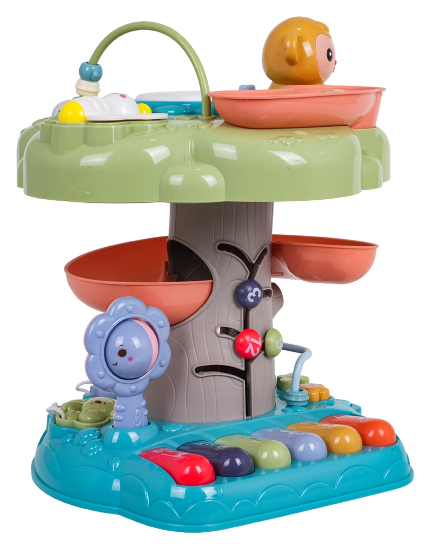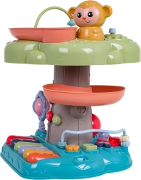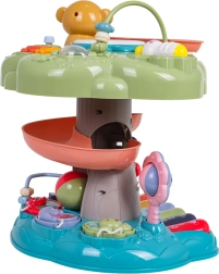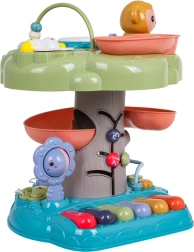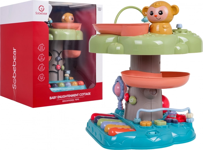 Interaktivní stromček je ideální vzdělávací hračka pro nejmenší. Děti zaujme podsvícený hudební bubínek na vrcholu, pianínko se čtyřmi režimy (čísla, melodie, zvířata a jejich zvuky, tóny) i spirálová dráha pro míčky, po které se kuličky s radostí kutálejí dolů. Barevné prvky, světla a melodie podporují smyslový rozvoj a učení příčin a následků.