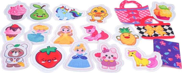 Součástí sady jsou filcové předlohy na kabelky, textilní díly, šablony na výrobu plyšových ozdob, výplň, kuličkové řetízky a nůžky – vše, co děti potřebují k výrobě vlastních doplňků a roztomilých přívěsků. Hra podporuje koordinační dovednosti, trpělivost a tvořivost.