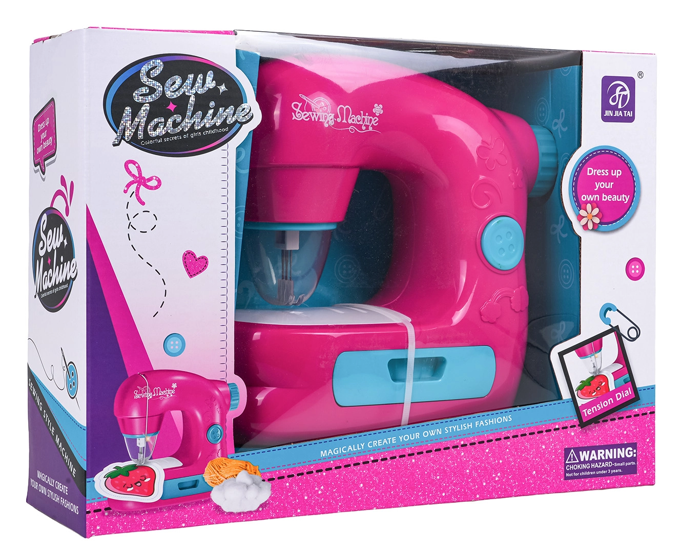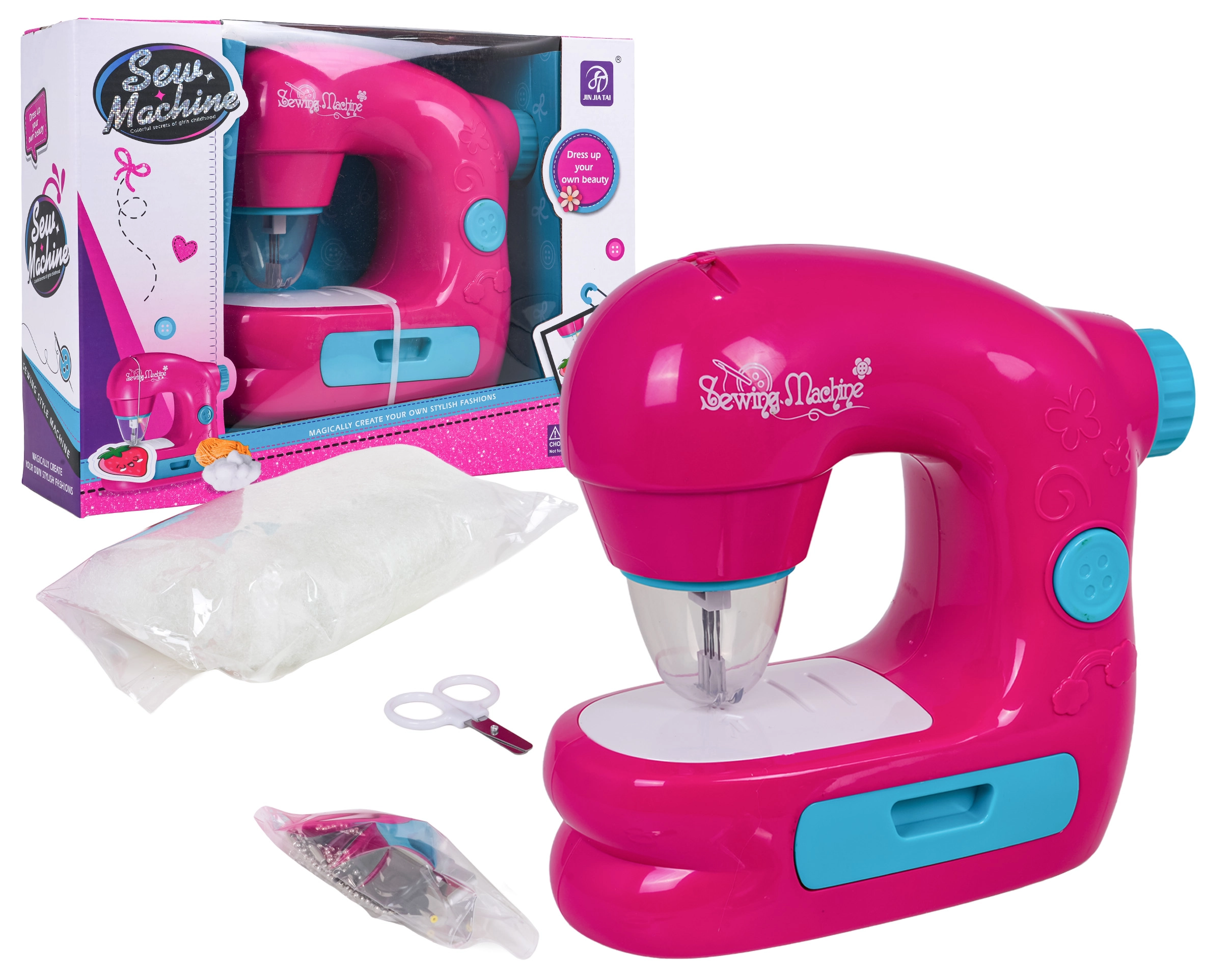 Dětský šicí stroj je navržen pro bezpečné a hravé učení šití. Díky zabudovanému krytu jehly, světlu při práci a realistickým zvukům si děti užijí autentický zážitek bez rizika poranění. Ovládání usnadňuje přepínač a pokroutko pro zvedání jehly, součástí je také vestavěný šuplík na drobnosti.
