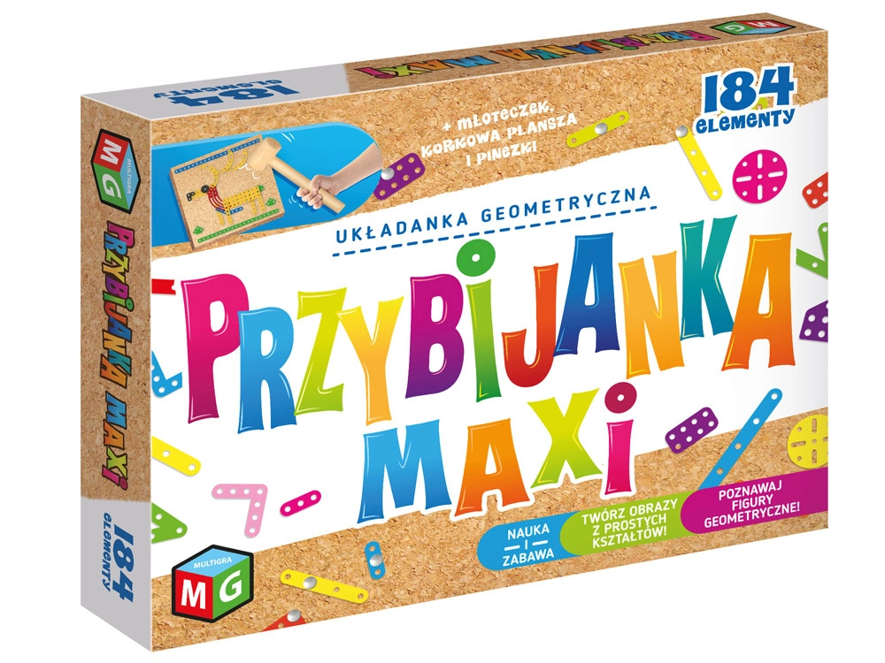 Podpořte dětskou fantazii a jemnou motoriku s kreativní sadou korková přibíječka MAXI. Děti pomocí dřevěného kladívka, pinek a kovových dílků vytvářejí vlastní obrázky nebo se inspirují knihou nápadů. Skvělá hračka pro rozvoj kreativity, trpělivosti a koordinace oko–ruka.
