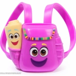 Fialový batůžek s úsměvem se po stisku otevře – ideální na drobné doplňky a mapu. Skvělé pro roli průzkumnice.