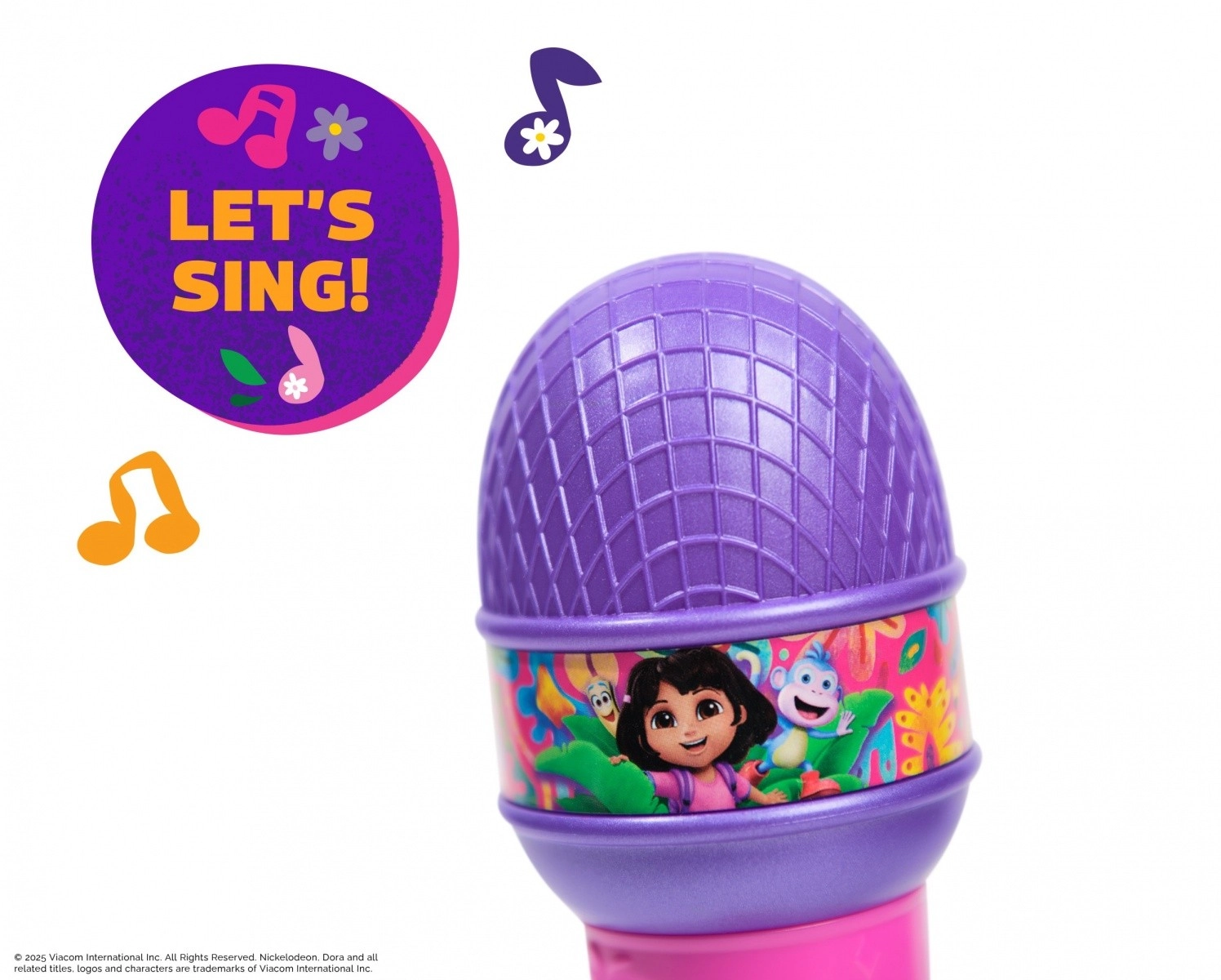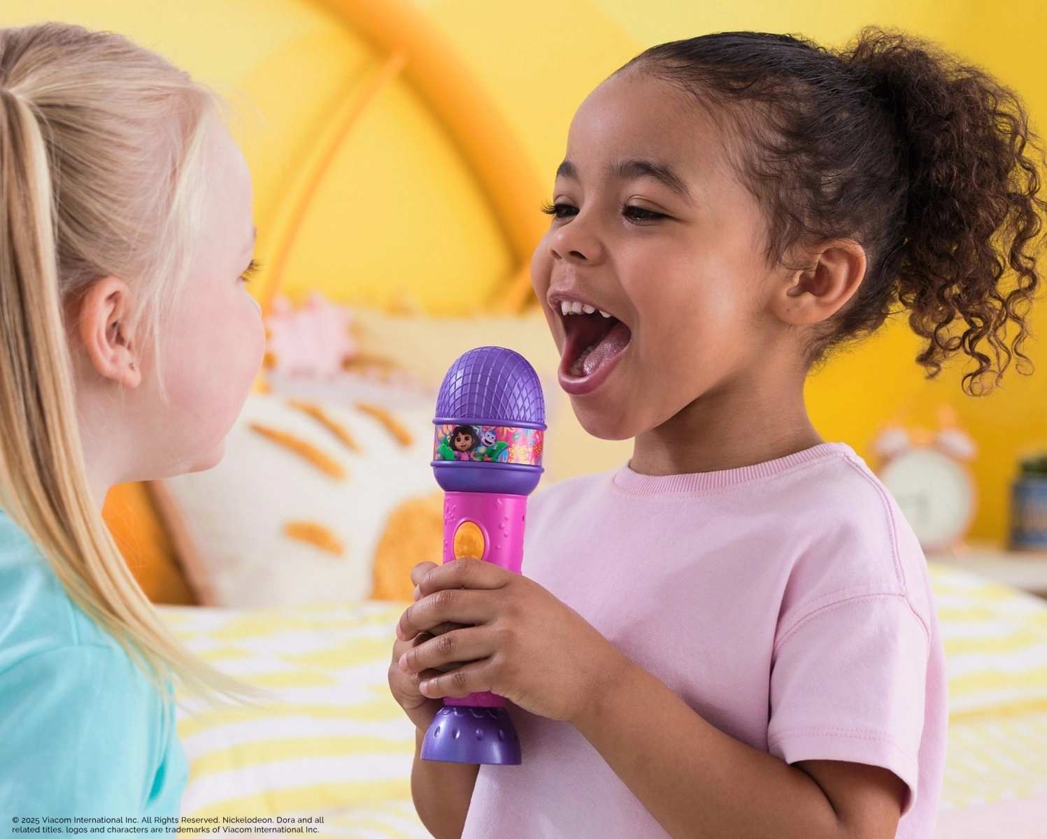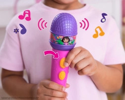 Mikrofon s efekty DORA je perfektní volbou pro malé zpěváky a fanoušky oblíbené hrdinky. Jediným stiskem tlačítka děti spustí známé hity jako „We Did It“ nebo „Todo Juntos“, případně si poslechnou veselé fráze, například „That's banana-riffic!“. Kompaktní velikost (19,5 cm) se skvěle drží a podporuje přirozenou dětskou kreativitu.