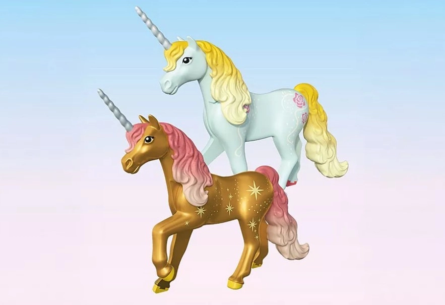 Lesklý jednorožec s doplňky pro hřebelcování a krmení inspiruje k roli pečujících víl a rozvíjí fantazii dětí.
