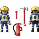 Dva stateční hasiči z balení PLAYMOBIL Duo Pack jsou připraveni k zásahu. S profesionálním vybavením, jako je sekera, baterka a hasičák, zvládnou každý požár i záchrannou akci. Díky pohybným štítům na helmách mají lepší přehled a rychlou reakci. Ideální pro kreativní hraní a doplnění sbírky.