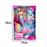 Panenka mořská víla WOOPIE Gina přináší dětem pohádkový svět plný světel, hudby a fantazie. Duhový pohyblivý ocas s růžovou ploutví, barevný top a dlouhé blond vlasy lákají k česání, zaplétání a stylování. Zabudované světelné a hudební efekty umocní zážitek ze hry a promění pokoj v podmořské království.