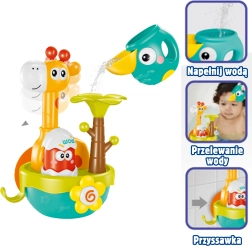 Žirafa do vany od Woopie Baby přináší dětem radost z vody a rodičům klidnější koupání. Nálevkou ve tvaru kachničky dítě naplní zásobník, čímž se spustí efekt malého vodopádu a z červené skořápky se vysune hlavička – jednoduchý, ale poutavý mechanismus, který motivuje ke hře a rozvíjí dovednosti.
