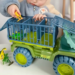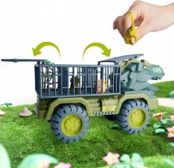 Balení obsahuje: dinosauří transporter, 15 figurek dinosaurů, dinosauří vejce, dekorace (stromek, kameny).
