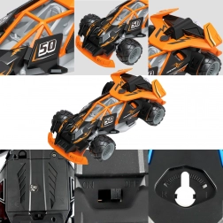 • Součást balení: RC auto s LED, ovladač 2,4 GHz, lahvička na vodu pro parní efekt.