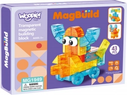 Průhledné magnetické kostičky Woopie otevírají dětem svět plný světla, pohybu a fantazie. Díky ukrytým magnetům se dílky přitahují „samé“ a umožňují rychlé, plynulé a zábavné stavění bez frustrace. Sada o 43 dílech nabízí univerzální tvary pro tvorbu nejrůznějších modelů od jednoduchých staveb po vyšší konstrukce.