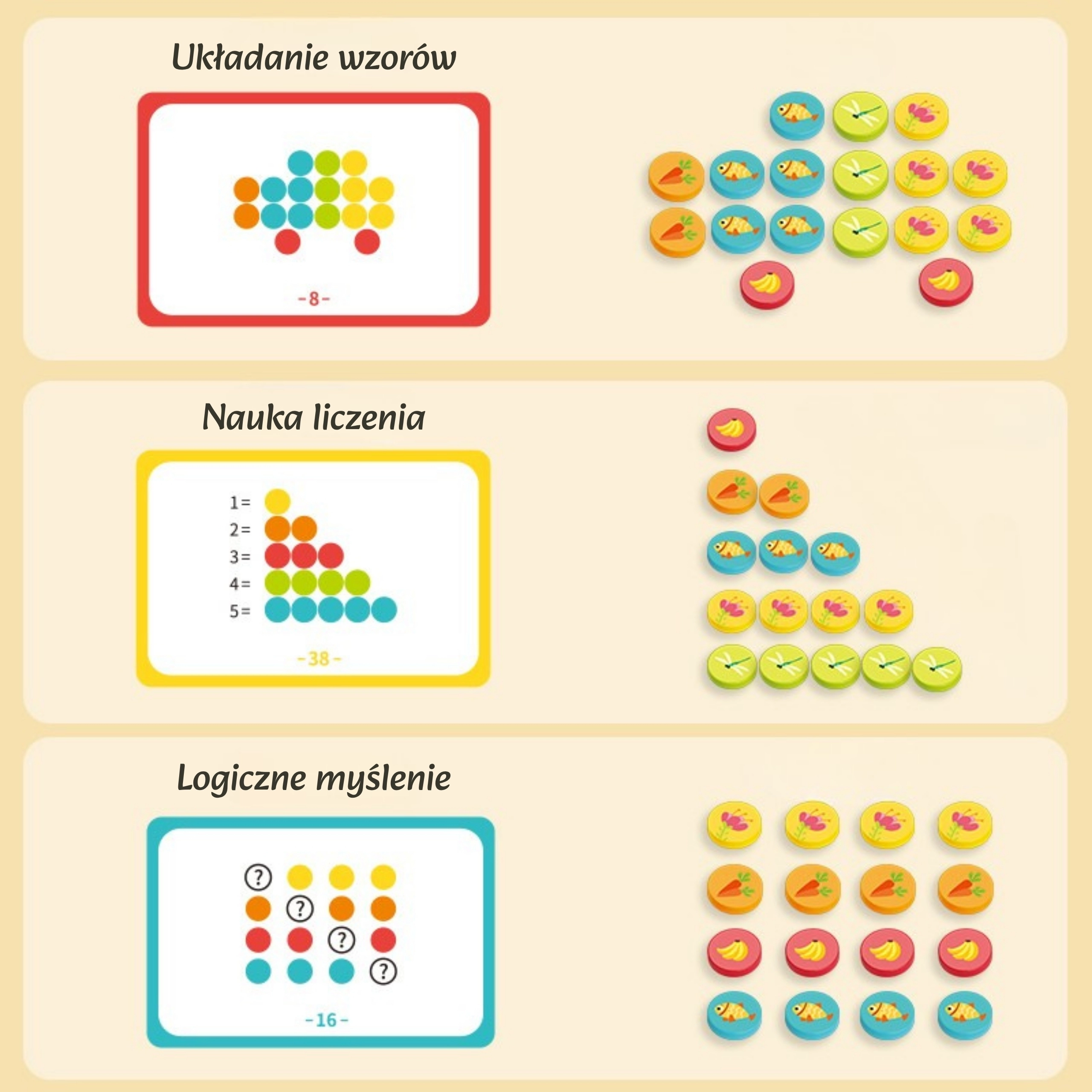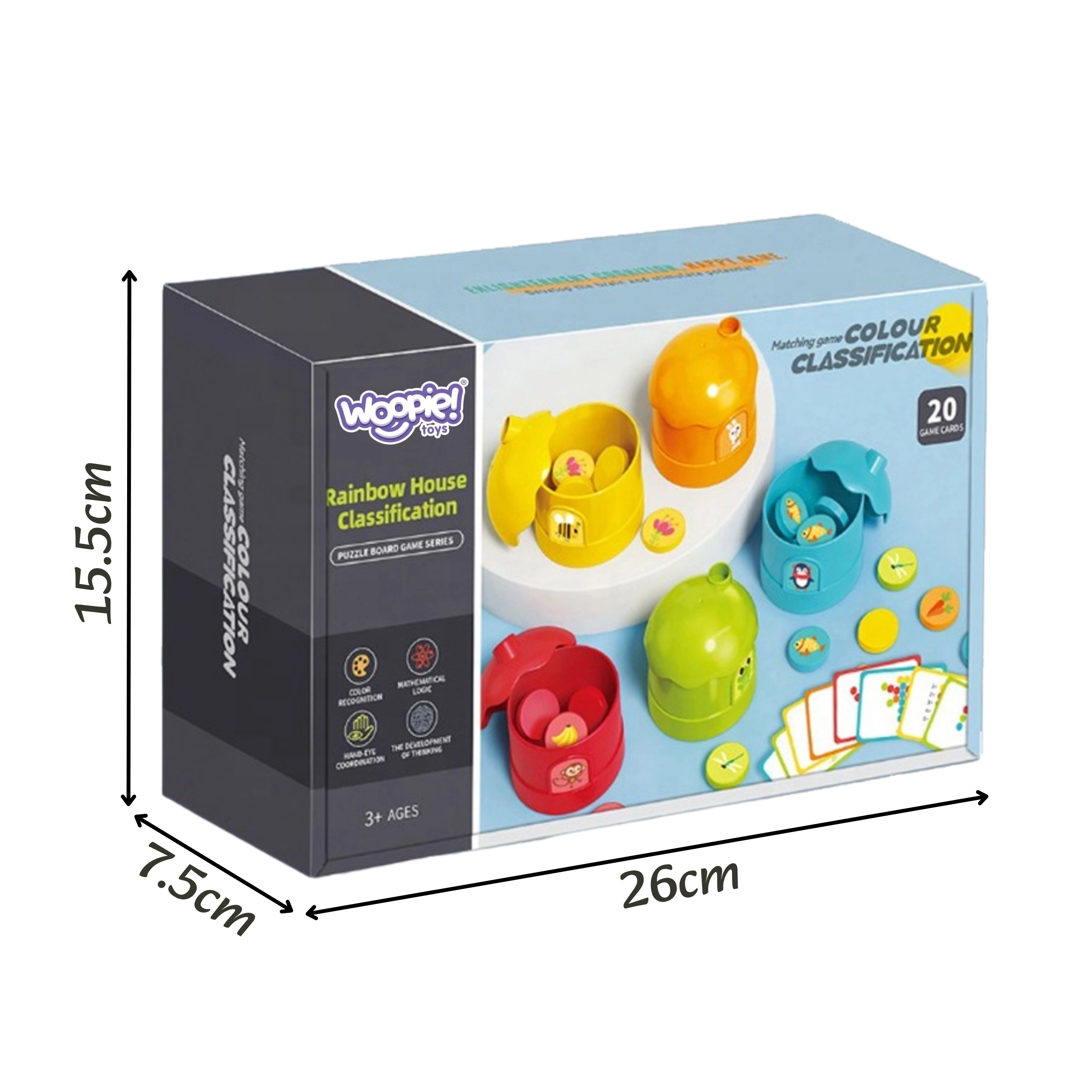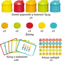 Součástí je 20 karet s úkoly, které určují, jaké žetony vložit do kterého domečku. Díky tomu lze snadno stupňovat obtížnost a udržet dítě v pozorné a radostné hře. Hra podporuje logické uvažování, matematickou logiku a učí děti třídit a kategorizovat.