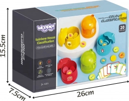 Hra Woopie Třídění barev je chytře navržená matching game pro malé zvídavé hlavičky. Děti přiřazují žetony podle barvy a tématu k jednotlivým domkům patřícím roztomilým postavičkám (např. pingvin, včelka či opička). Tím si přirozeně procvičují vnímání barev, soustředění a koordinaci oko–ruka.