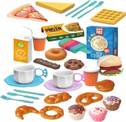 Bohatá sada sladkostí a dezertů ve vědru od značky WOOPIE potěší všechny malé kuchaře. Najdete v ní 40 realistických dílků – od donutů, sušenek, preclíků, muffinů a zmrzlin až po snídaňové doplňky a nápoje. Součástí jsou také šálky, talířky a příbory pro ještě autentičtější hru. Vše je uloženo v průhledném vědru s držadlem pro snadné přenášení a úklid. Skvělé pro hraní na kavárnu, restauraci či odpolední čaj – rozvíjí kreativitu, představivost a sociální dovednosti.