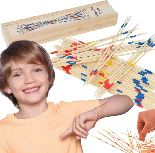 Klasická hra mikádo z kvalitního přírodního dřeva přináší zábavu i trénink trpělivosti a přesnosti. Jednoduchá pravidla, barevně označené tyčinky pro snadné bodování a praktické balení dělají z této sady skvělou volbu pro rodiny, školky i volnočasová centra. Ideální na doma, na cesty i piknik.