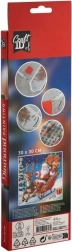 Návod: Horní strana plátna je kryta folií s lepicí vrstvou – odkrývejte ji postupně podle práce. Řiďte se legendou se symboly a čísly sáčků. Do hrotu pera naberte trochu vosku a kamínky pokládejte na příslušná pole. Po dokončení barvy kamínky vraťte do sáčku a pokračujte další barvou. Poznámka: rám není součástí balení.