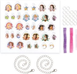 Obsah balení: řetízky na náramky, pěnové přívěsky s motivy DISNEY PRINCESS, doplňky pro zdobení.