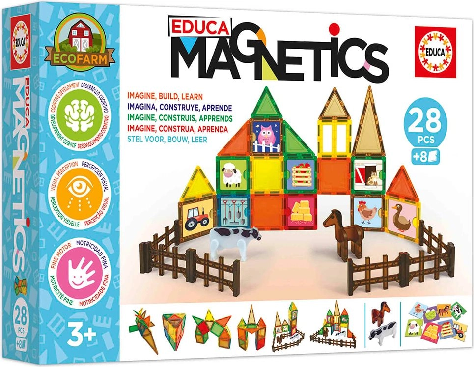 Magnetická stavebnice EDUCA Magnetics EKO Farma je ideální volbou pro děti, které milují tvoření a objevování. Silné magnety a kvalitní zpracování zaručují stabilitu staveb a dlouhou životnost. Dílky jsou příjemné do ruky, mají zaoblené hrany a jsou vyrobené z kvalitních, bezpečných materiálů.
