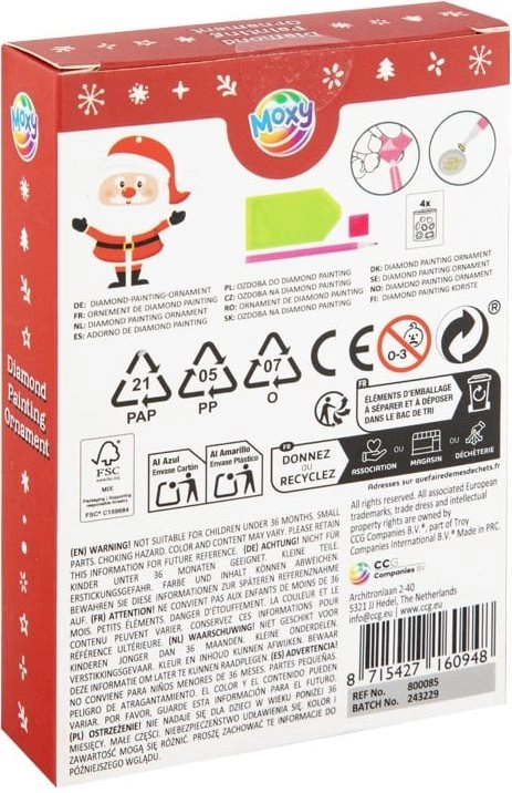 Vytvořte si vlastní třpytivou vánoční dekoraci s sadou MOXY. Tato kreativní sada obsahuje 1 ozdobu s motivem SANTY, samolepicí povrch a barevné kamínky. Aplikace kamínků podle čísel je snadná i pro začátečníky, rozvíjí jemnou motoriku, soustředění a přináší radost z vánočního tvoření.