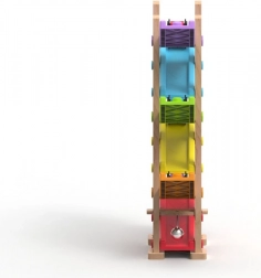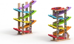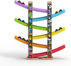Tato velká dřevěná závodní dráha přináší do dětského pokoje více rychlosti i zábavy. Díky šesti pestrobarevným rampám děti sledují plynulou jízdu autíček a objevují principy gravitace a příčiny–následku. Dráhu můžete používat zcela samostatně nebo ji připojit jako rozšíření k vaší stávající trati pro ještě delší a dynamičtější jízdu.