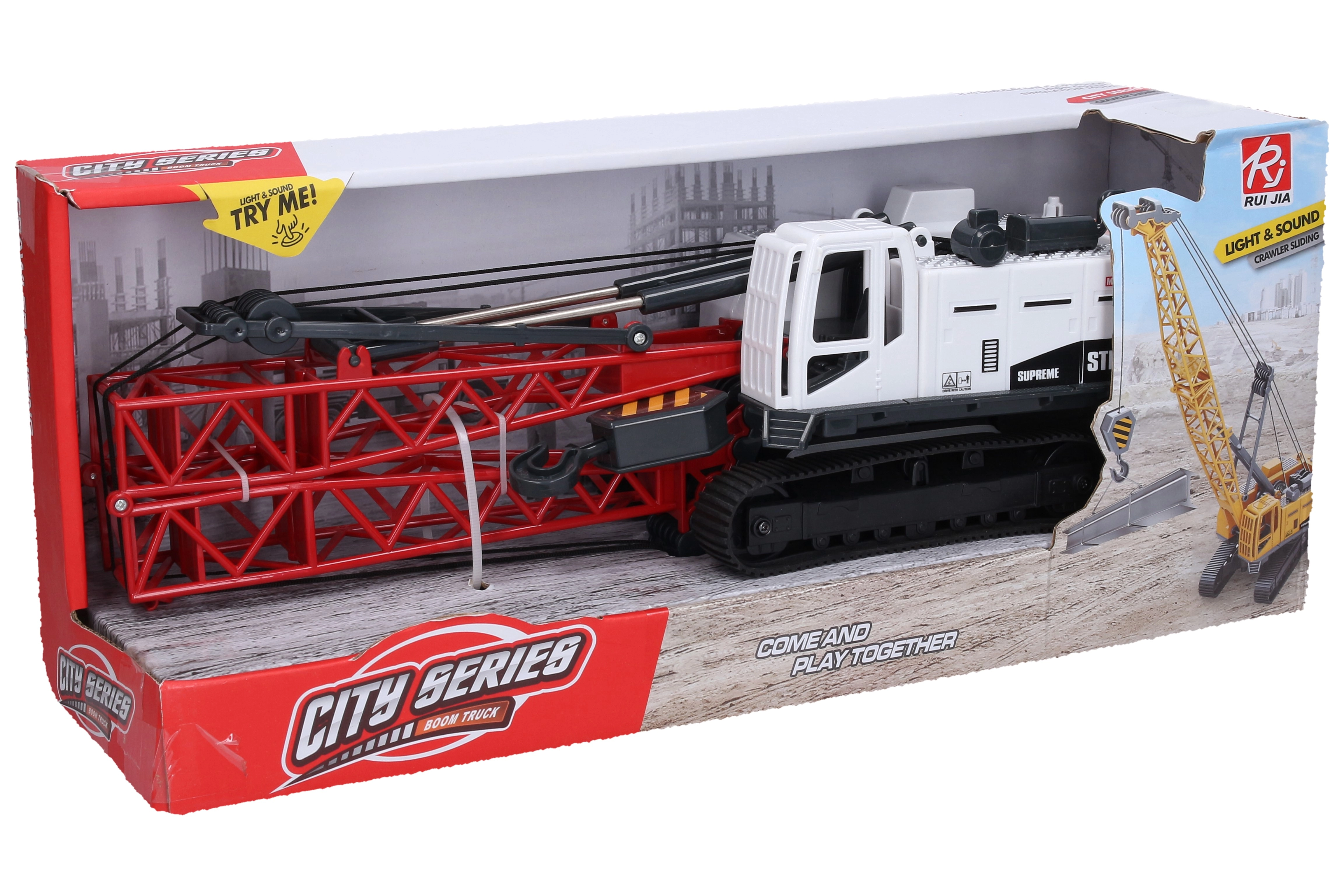 Tento pásový jeřáb nabízí dětem realistickou stavební zábavu se snadným ovládáním. Robustní konstrukce, výrazné detaily a efektivní pohyb po pásech podporují fantazii i jemnou motoriku. Světelné a zvukové efekty ještě umocní autentický zážitek ze stavby.