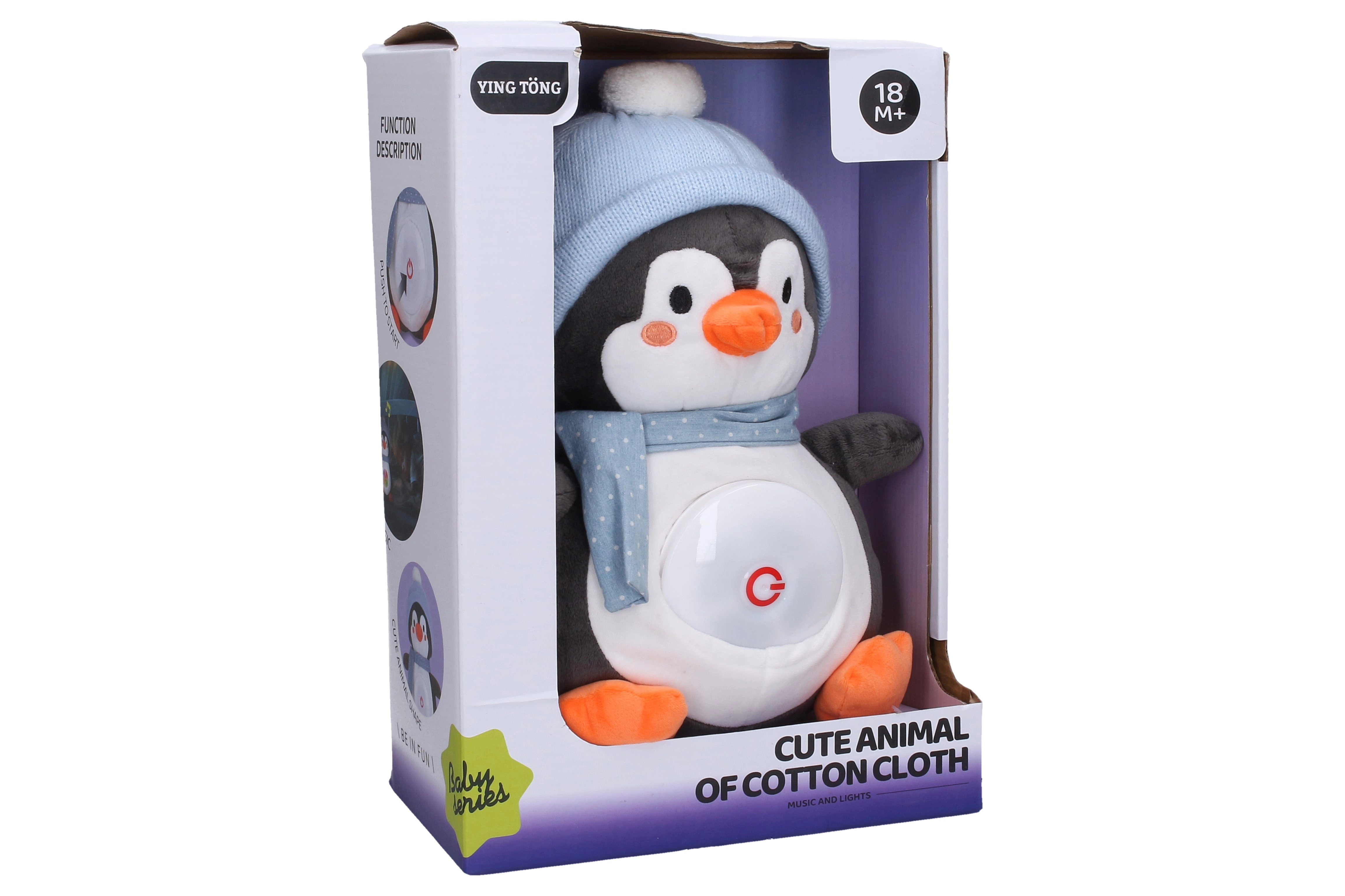 Tento měkoučký usínáček tučňák vytváří příjemnou atmosféru pro usínání. Bříško hračky při přehrávání plynule mění barvy, což dětem navozuje pocit bezpečí a klidu. Díky přehlednému ovládání na bříšku snadno spustíte a přepnete jednu z 5 melodií.