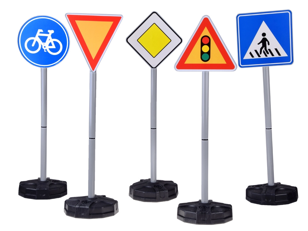 - 5 figurek dopravních značek (semafor, přechod pro chodce, hlavní silnice, kruhový objezd, cyklostezka)