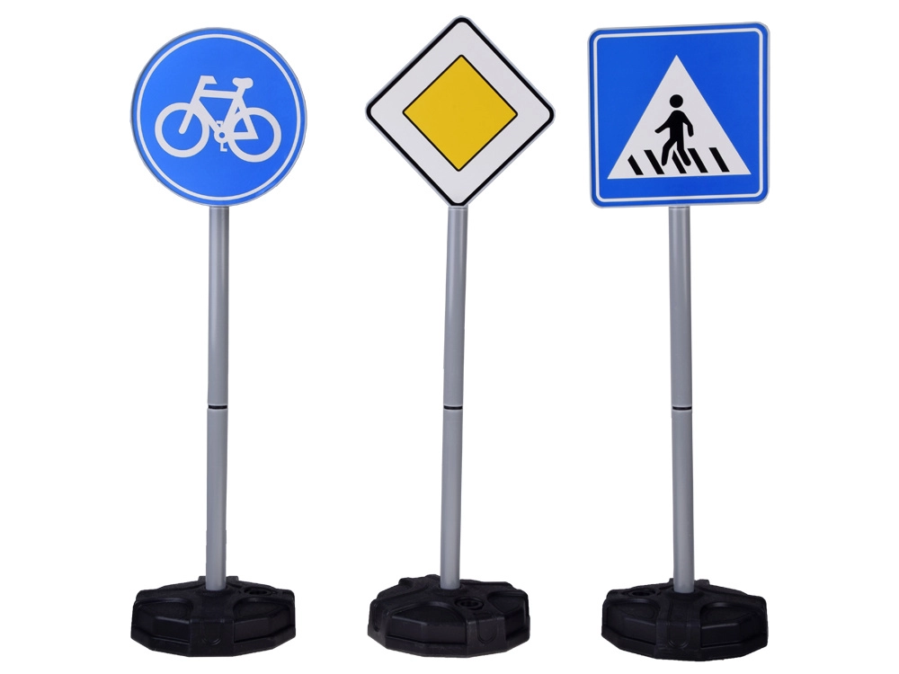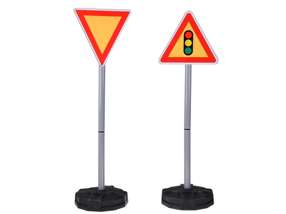 Zřetelné piktogramy a výška cca 77 cm pomáhají dětem pochopit význam značek a bezpečně trénovat dopravní situace při hře.