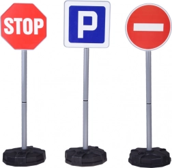 Tento interaktivní set obsahuje 5 nejoblíbenějších dopravních značek: práce na silnici, dej přednost v jízdě, STOP, parkoviště a zákaz vjezdu. Sestavení je snadné – každý stojan se skládá z podstavce, trubek a konektorů. Základny lze naplnit vodou nebo pískem pro maximální stabilitu i při živé hře.