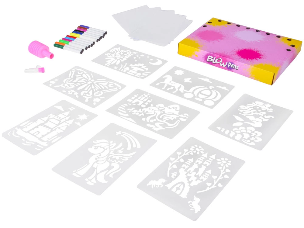 Tato jedinečná výtvarná sada promění běžné malování v zážitek. Stačí vložit fix do ruční pumpičky, zacílit na šablonu a lehkým stlačováním rozprašovat barvu. Vznikají tak efektní tečkované i jemně stříkané motivy. Barvy lze během práce libovolně střídat, takže každý obrázek bude naprosto originální.