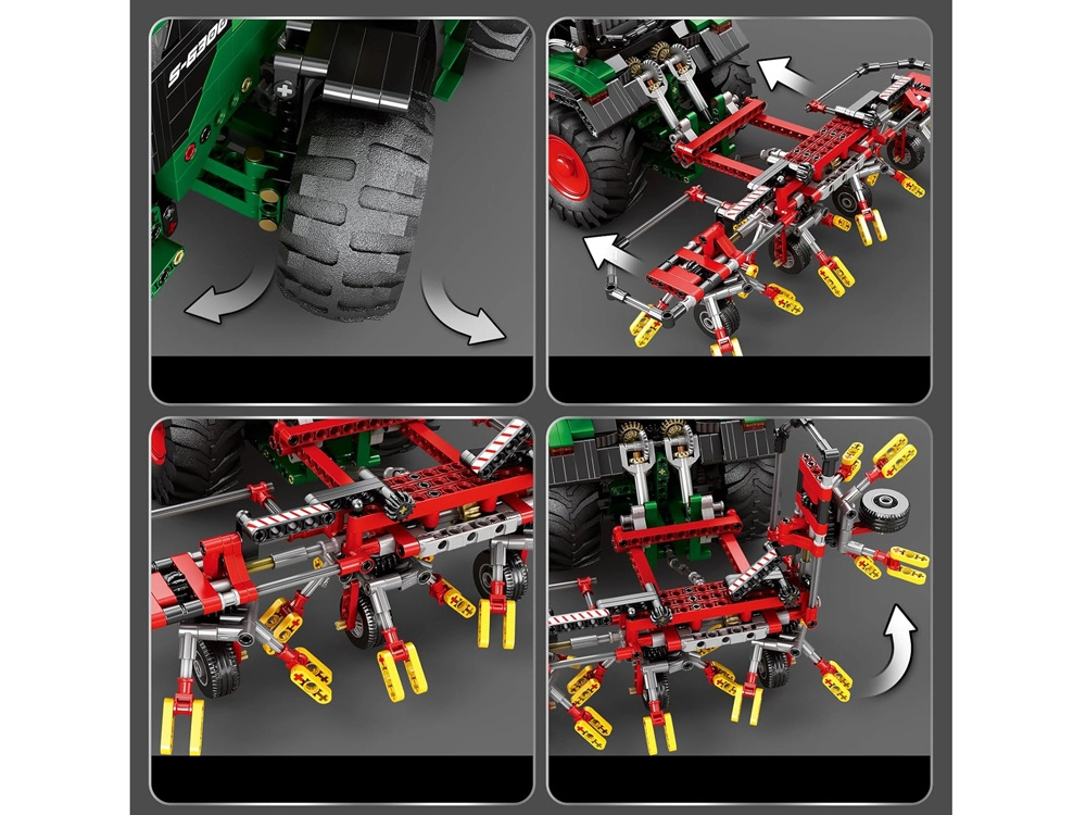 Tato technická stavebnice potěší nadšence do strojů, mechaniky i modelů. Zelená kabina, masivní pneumatiky s výrazným dezénem a tažené brány věrně imitují moderní zemědělský traktor. Díky dálkovému ovládání a motorům si užijete plynulou jízdu i interaktivní ovládání.