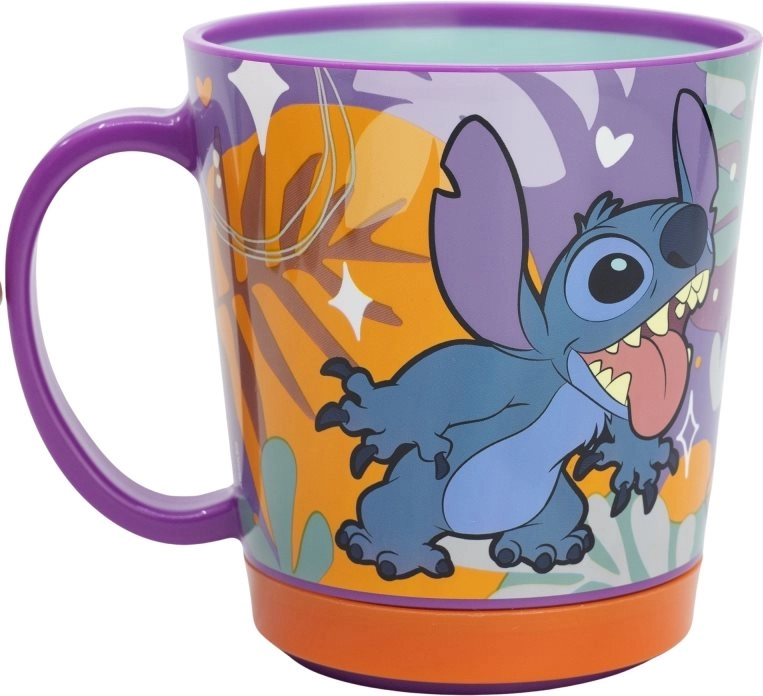 Stylový plastový hrnek s motivem STITCH a chytrou technologií SmartGrip pro jistotu bez rozlití. Protiskluzové a protihlukové dno pevně přilne k hladkému povrchu, takže se hrnek nepřevrátí, ale lze jej kdykoli snadno zvednout. Lehký, odolný a ideální pro každodenní použití i jako originální dárek.