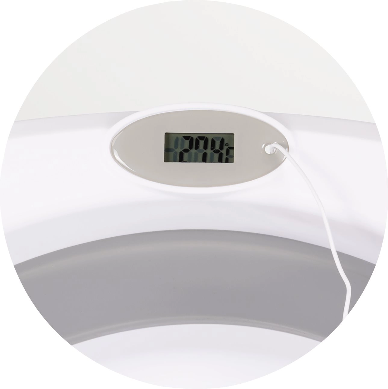 Stabilní kovový stojan zvedá vaničku do pohodlné výšky, čímž šetří záda rodičů. Protiskluzové prvky zajišťují bezpečné používání na různých površích a hladké plochy se snadno čistí. S moderním, kompaktním designem se vanička hodí do každé koupelny a je ideální i do menších prostor nebo na cesty.