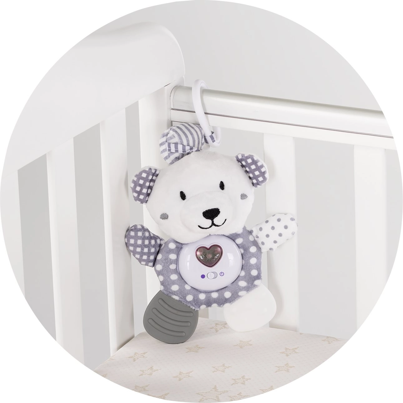 Hledáte něžného parťáka, který vaše miminko zabaví a zároveň uklidní? Plyšový medvídek CHIPOLINO Teddy Bear kombinuje měkké materiály, příjemné melodie a jemné světlo, aby vytvořil útulné prostředí pro odpočinek i hraní. Díky praktickému klipu ho snadno připevníte na kočárek, autosedačku či postýlku.