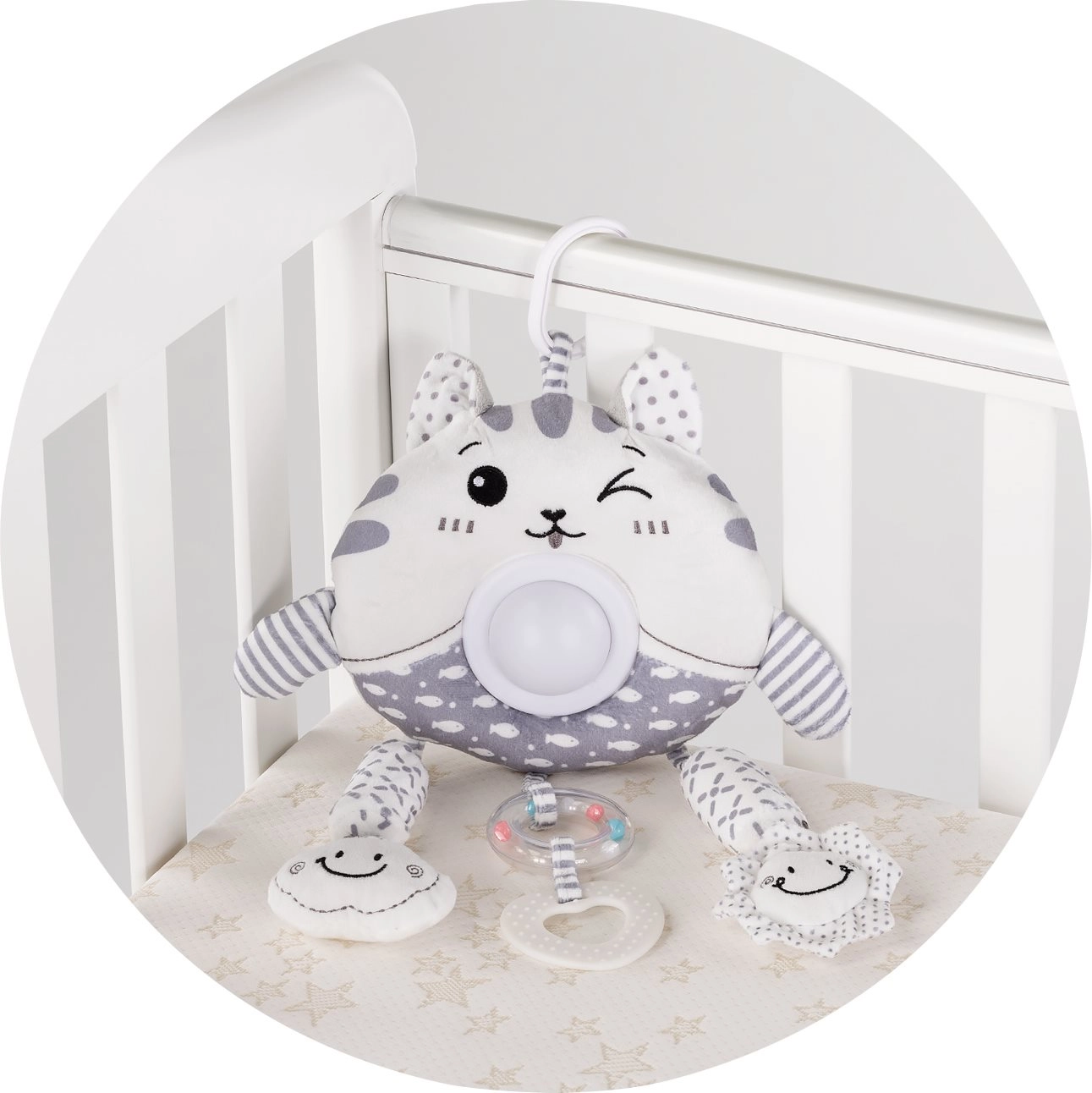 Plyšová kočička Big Kitty je ideální společník pro miminko – uklidní, zabaví a podpoří smyslové vnímání. Díky univerzálnímu háčku ji snadno připevníte na kočárek, autosedačku nebo k postýlce. Příjemné materiály, jemné barvy a světelné efekty vytvářejí pohodovou atmosféru pro hraní i usínání.