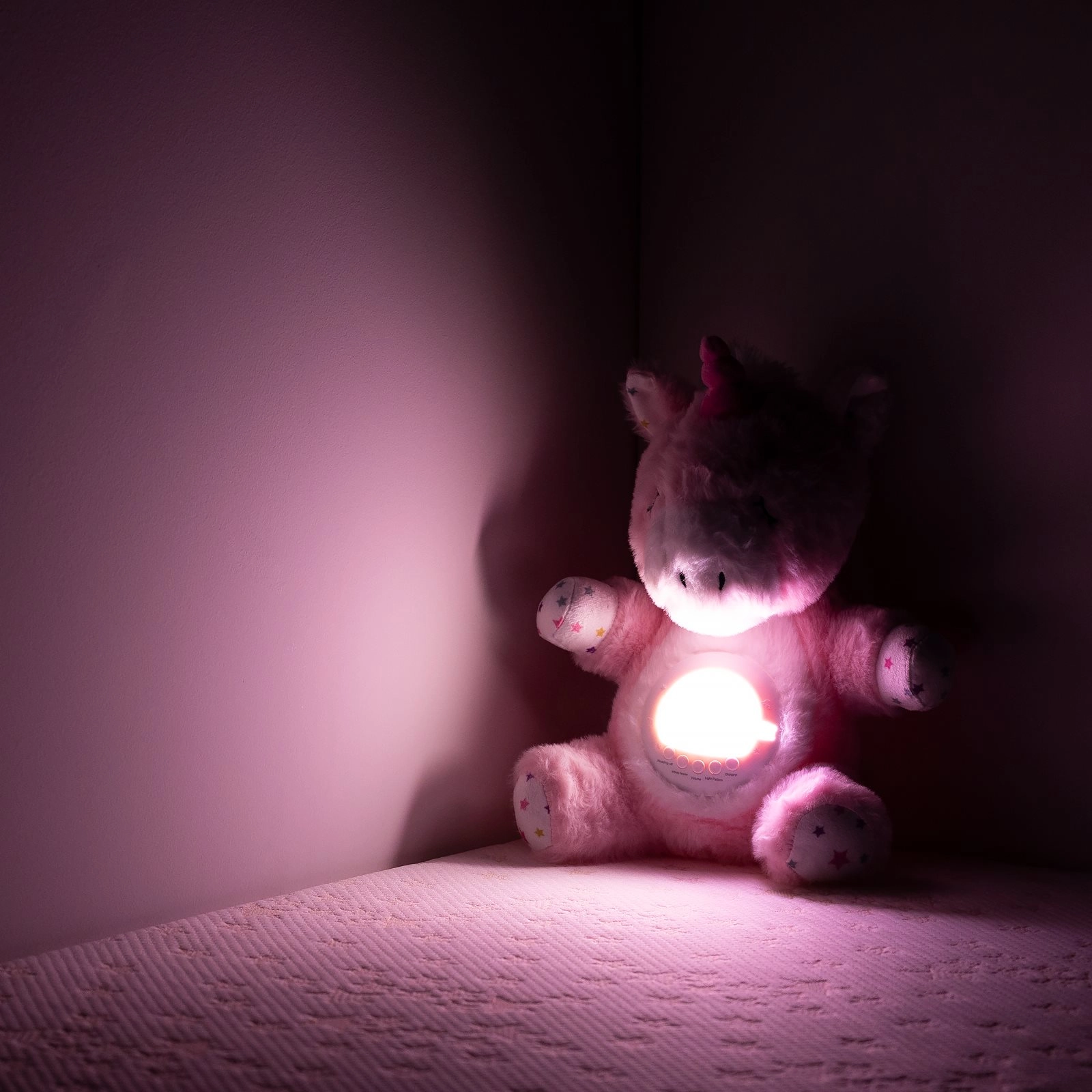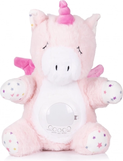Plyšový jednorožec CHIPOLINO je hebký společník do postýlky, který zklidní vaše děťátko jemným světlem a přirozenými zvuky. Díky kombinaci projekce hvězdné oblohy, noční lampičky a ukolébavek vytváří příjemnou atmosféru pro nerušený spánek.